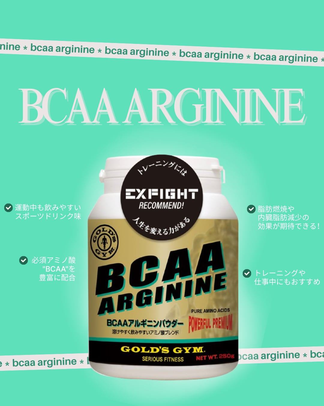 BCAAアルギニンパウダーは、BCAA(バリン、ロイシン、イソロイシン)を最適な比率で設計し、アルギニンを配合したアミノ酸サプリメントです。